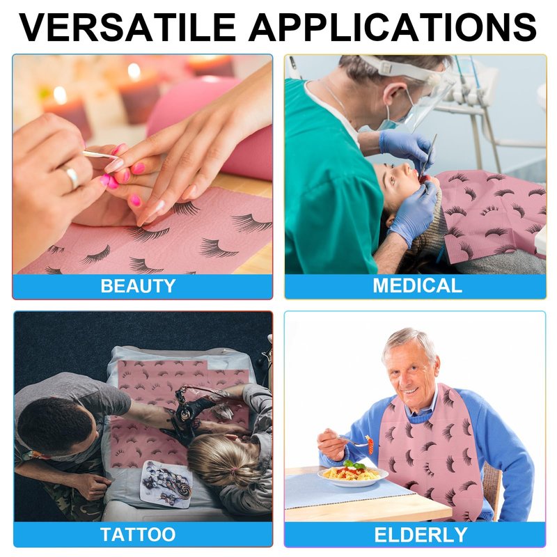 - [Multi-purpose Bibs ]- -PRASNE Tattoo Dental Bibs is not only a good performance disposable bibs for tattoo work, dental, piercing, cosmetology, lash work, and more. But also perfect to use as an incontinence Pad for Kids, Adults, and animals