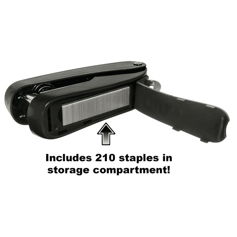 - ADDED CONVENIENCES: Features a built-in staple remover and opens flat for 'tacking' needs; The staple storage compartment holds 210 extra staples, ensuring you're always prepared