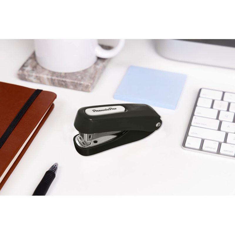 Praxxis Pro Office Supplies - Aria-Plus Half-Strip Mini Stapler - Durable, Compact, and Colorful Stapler for Office and Travel Use, Compatible with Standard 26/6 Staples, Charcoal