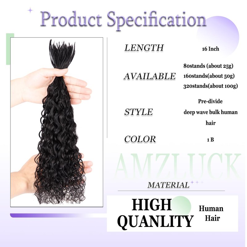 - Human Hair Extensions Raw Materials:Deep water wave Bulk Human Hair Braiding Hair for Boho Braids use 100% unprocessed 12A Brazilian virgin human hair,Our deep wave bulk human hair comes from young and healthy female donors. The hair is healthy, full, elastic and shiny