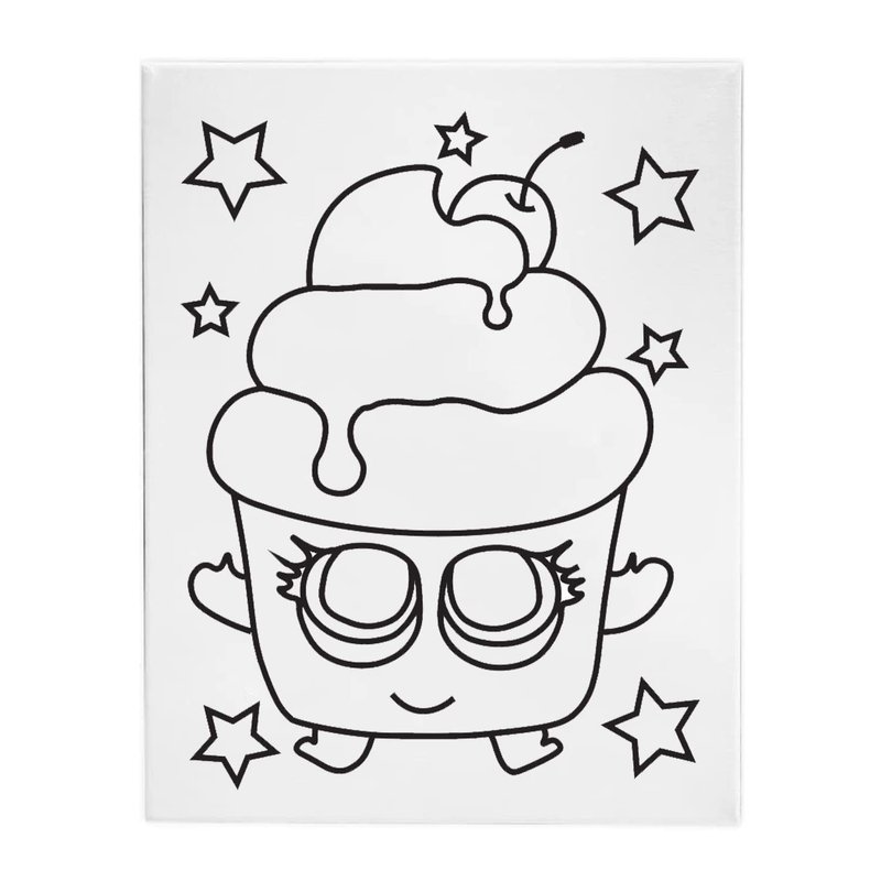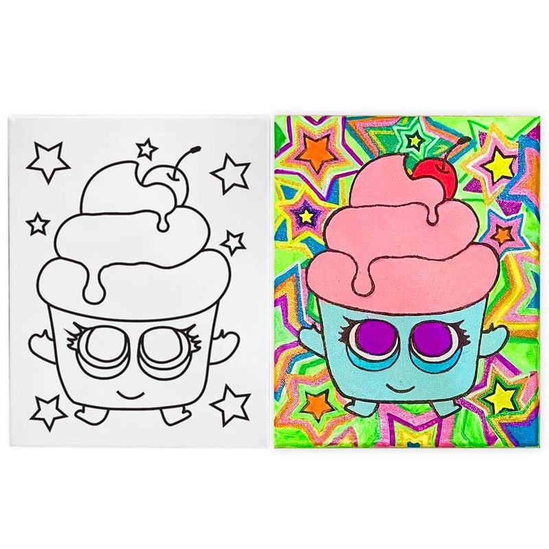 Pre Drawn Stretched Canvas Painting for Kids | Custom Theme | Birthday Gift Sweets Donut Cupcake Ice Cream Milkshake Theme | Paint party favor | DIY (8x10) (Canvas Only, Cupcake)