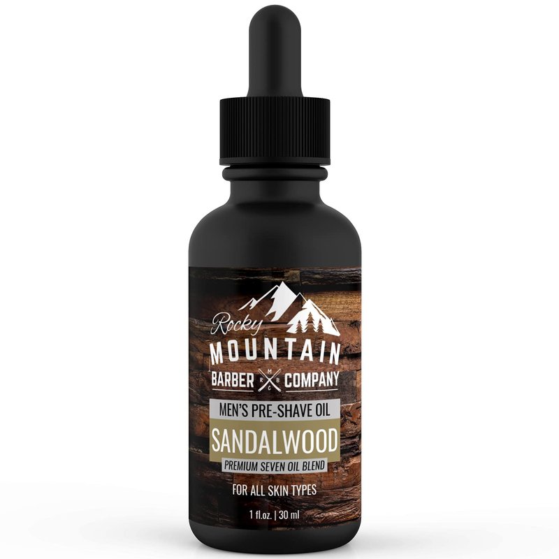 Pre-Shave Oil – with Sandalwood Essential Oil, Jojoba Oil and Argan Oil - Seven Oil Blend for a Smooth Shave by Rocky Mountain Barber Company – 1 floz