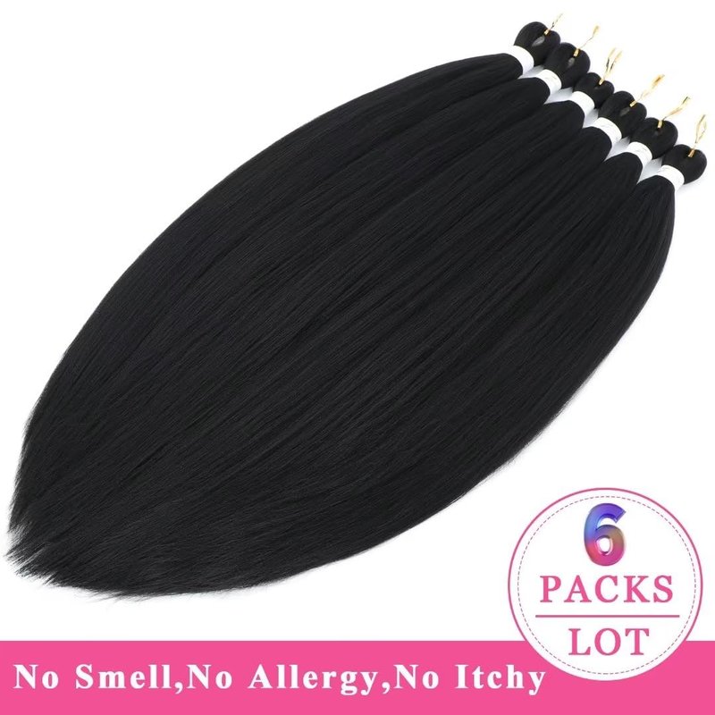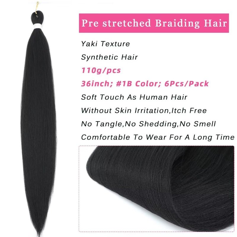 Pre Stretched Braiding Hair 36inch 6 Packs Synthetic Braiding Hair 1B Black Braiding Hair Pre Stretched Soft Yaki Braiding Hair For Braids Long Braiding Hair Extensions(1B,6Packs,36inch)
