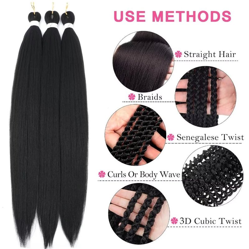 - Hair Material: Pre-Stretched Braiding Hair Is Made Of Good-Quality,Low-Temperature,Flame-Retardant Synthetic Fiber. Yaki Texture Is Very Soft And Natural-Looking. Comfortable To Wear For A Long Time.