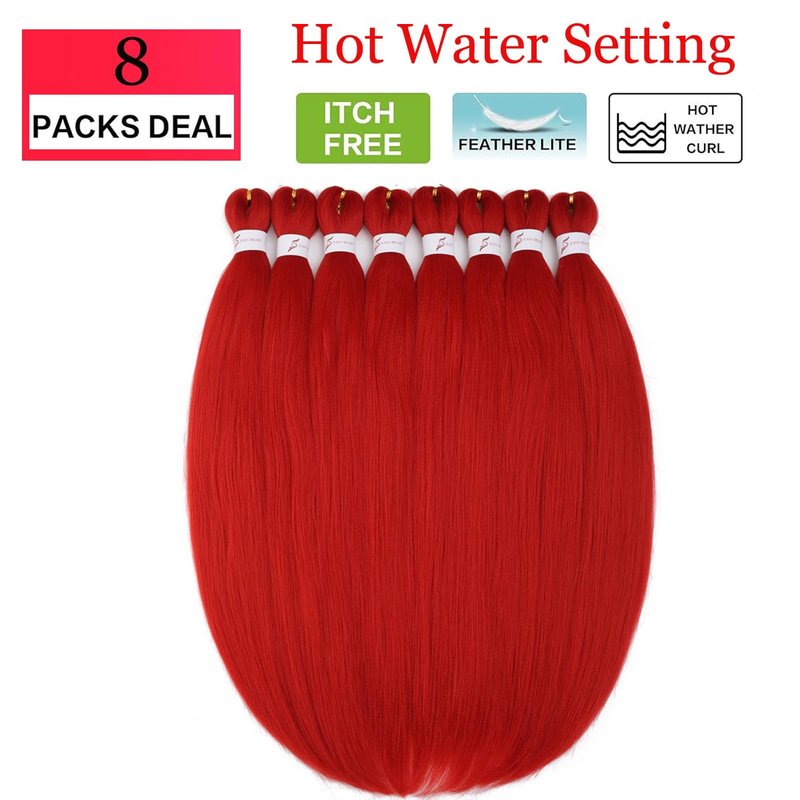 Pre Stretched Braiding Hair 8 Packs 30 inch Long Braiding Hair Prestretched Crochet Braids Hair Professional Yaki Straight Synthetic Hair Extensions(30",Red)