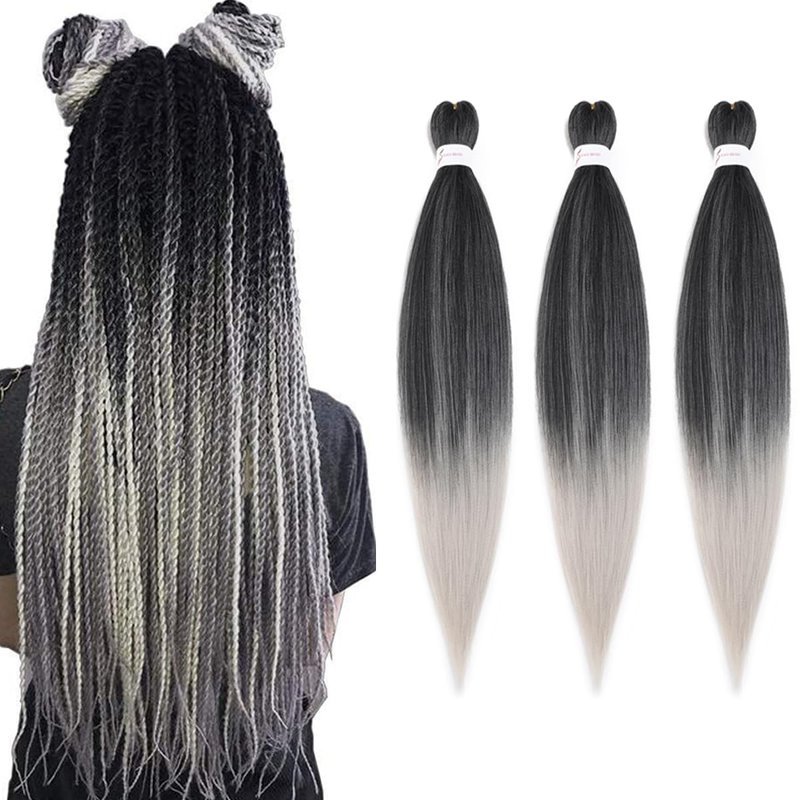 Pre Stretched Braiding Hair Professional Crochet Braid Hair 30 Inch 3 Packs Soft Synthetic Braiding Hair Extensions for Twist Senegalese Crochet Hair(30",1B/Gray)