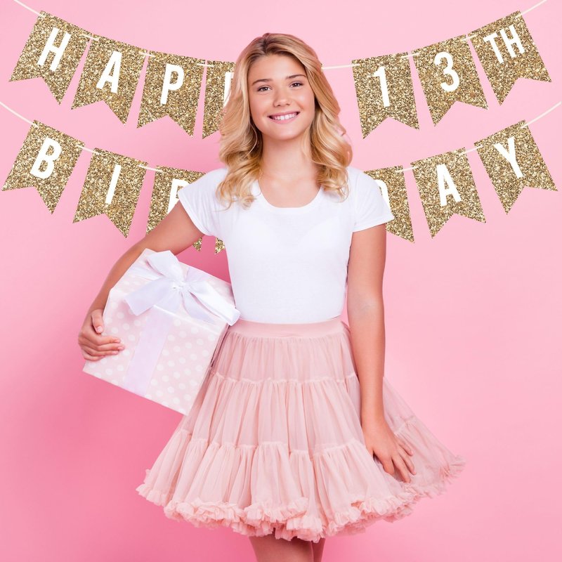 Pre-Strung Happy 13th Birthday Banner - NO DIY - Gold Glitter 13th Birthday Party Banner For Boys Girls - Pre-Strung Garland on 6 ft Strands - Gold Birthday Party Decorations & Decor. Did we mention