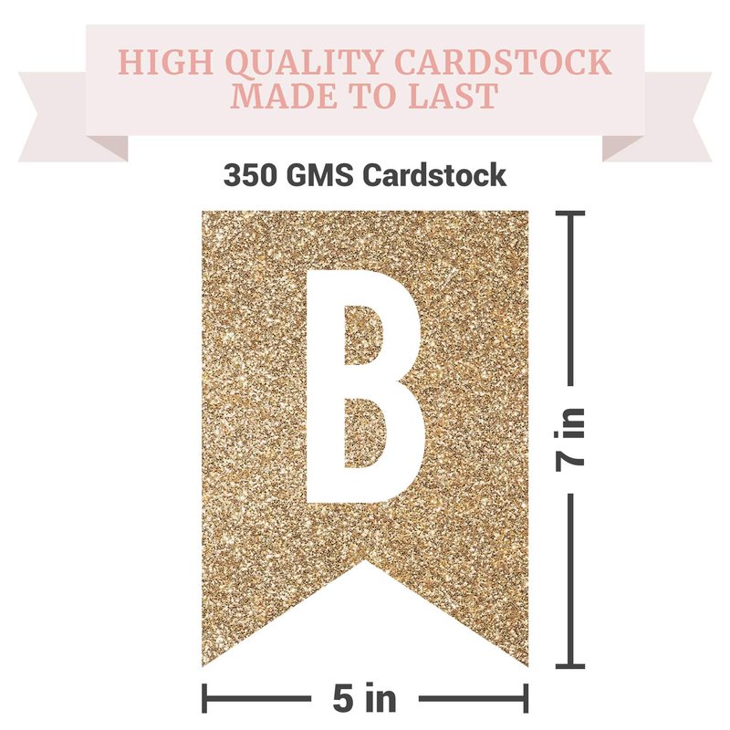 - THICK, HIGH QUALITY CARDSTOCK MADE TO LAST 🌟 Each letter pendant is 7 in x 5 in and is made from strong 350 gsm/130lb cardstock, so that you can easily fold up and use year after year! The real gold glitter adds the perfect touch to your birthday decorations. You can easily add them to mantels, banisters, windows, desert tables, or even use as a photo backdrop. The options are endless!