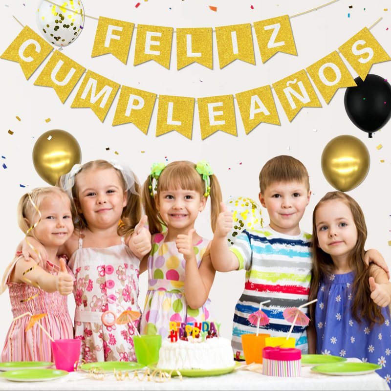 Pre-Strung Happy Birthday Banner - NO DIY - with Shiny Letters Glitter FELIZ CUMPLEAÑOS DECORATIONS Banner for Gold Birthday Party Decorations and Supplies