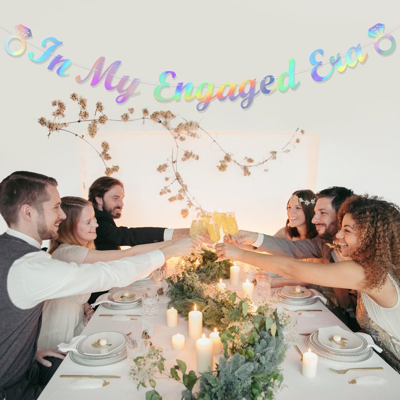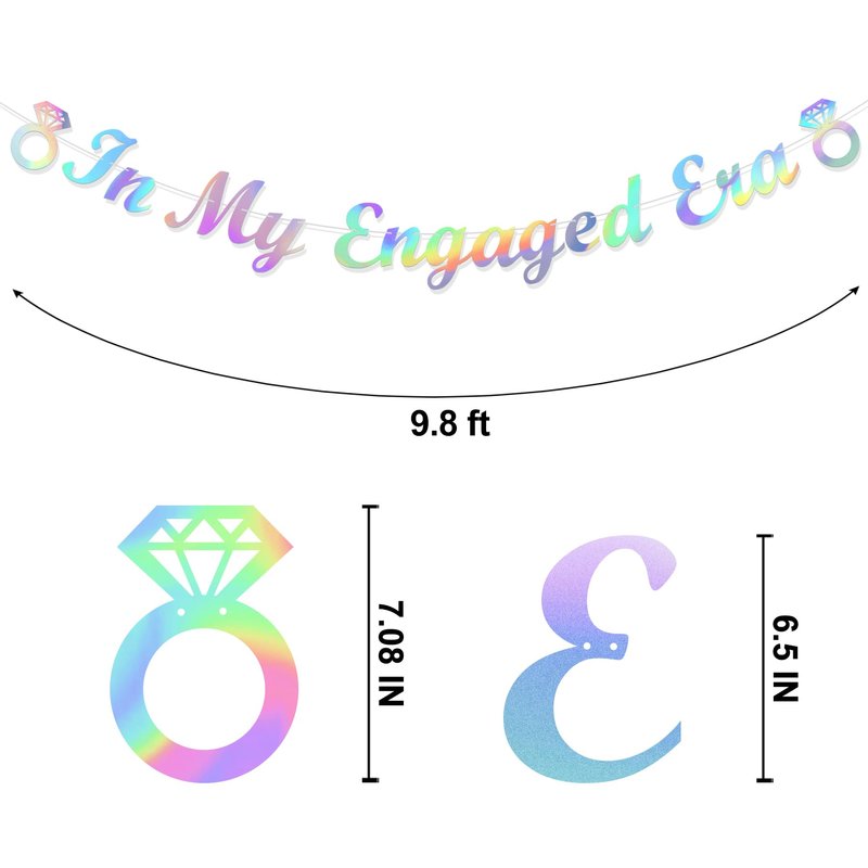 - Engagement Party Decorations - This iridescent dazzling in my engaged era banner will help you light up the beautiful night, make the engagement party unique and create unforgettable moments