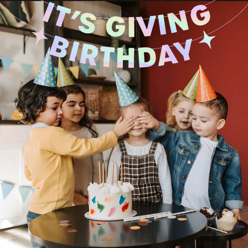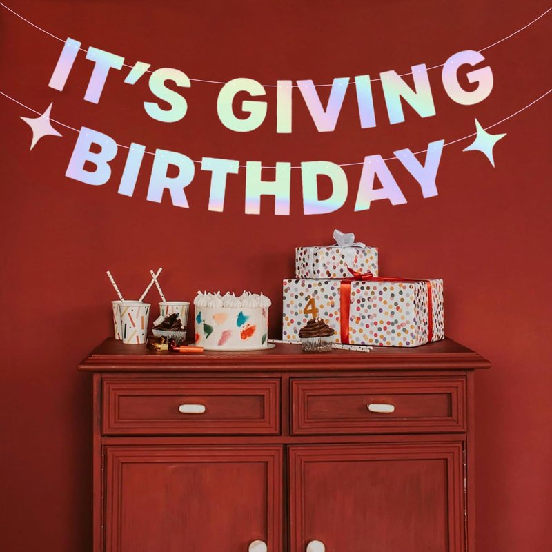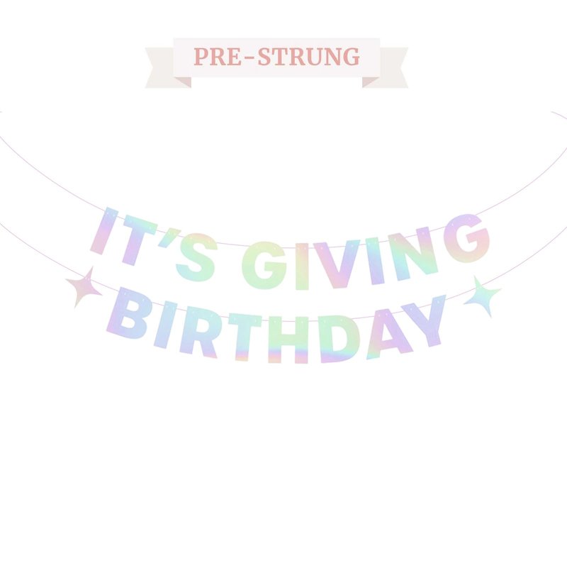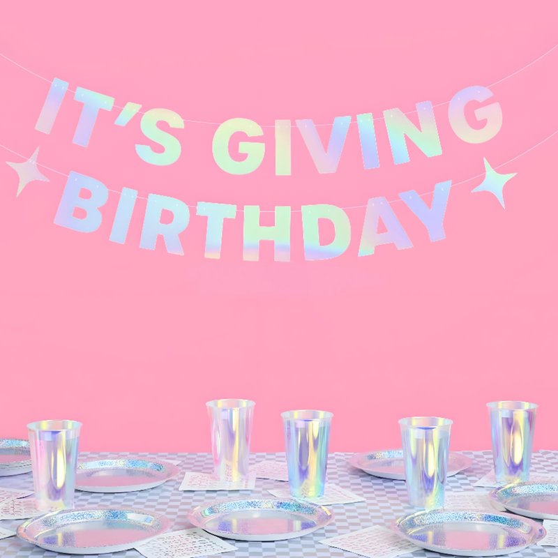 Is it bright in here, or is it just this banner?! This super pretty iridescent birthday banner creates a super fun background for your next birthday! If you're looking to throw a birthday party that your guests won't forget, look no further! This iridescent l banner that spells out "It's Giving Birthday" with sparkles is sure to create a super exciting atmosphere for the entire party! It's truly the ultimate party decoration! birthday banner
