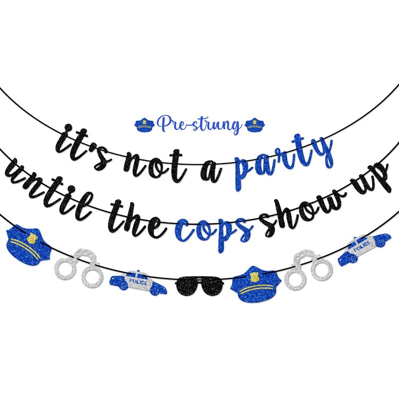 Pre-strung It's Not a Party Until the Cops Show up Banner, Police Retirement Banner, Police Birthday Party Decorations, Police Themed Garland, Black and Blue Glitter