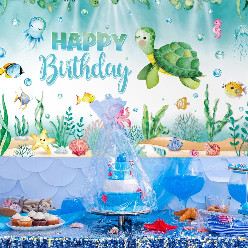 - Widely Applications: sea animals happy birthday background is suitable for ocean birthdays, turtle newborn showers, ocean animal parties, and summer underwater parties; Ocean animal photography backdrop can add a mysterious atmosphere to your party and record unforgettable memories