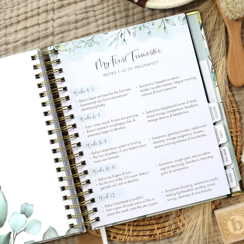 - 8 Clever Tabs To Keep Track Of Everything: With the gorgeous baby memory book you can arrange everything perfectly across 8 sections - from weekly calendar planners, baby registry checklists, birth plan, medical information and appointments, trimester planners all the way up to a dream board