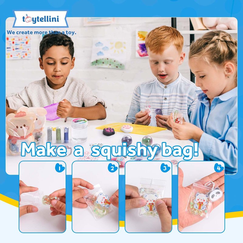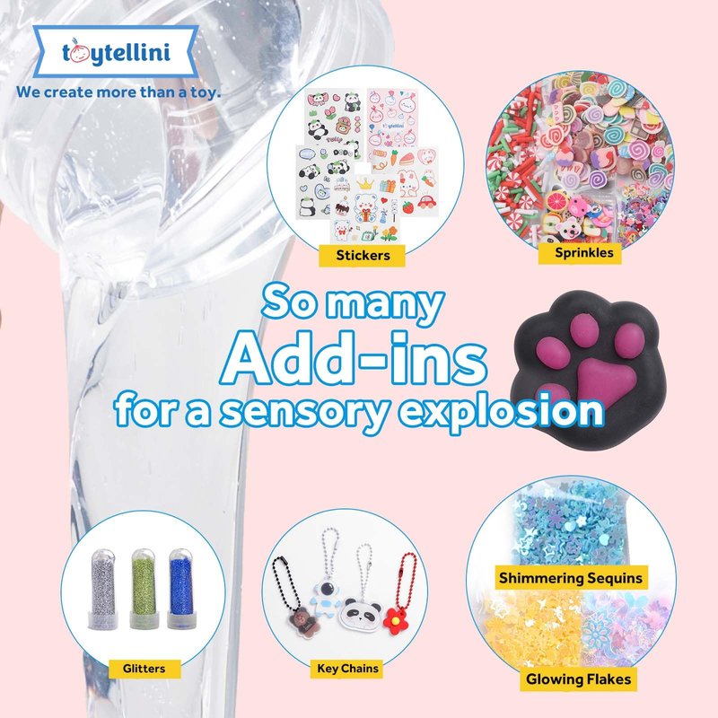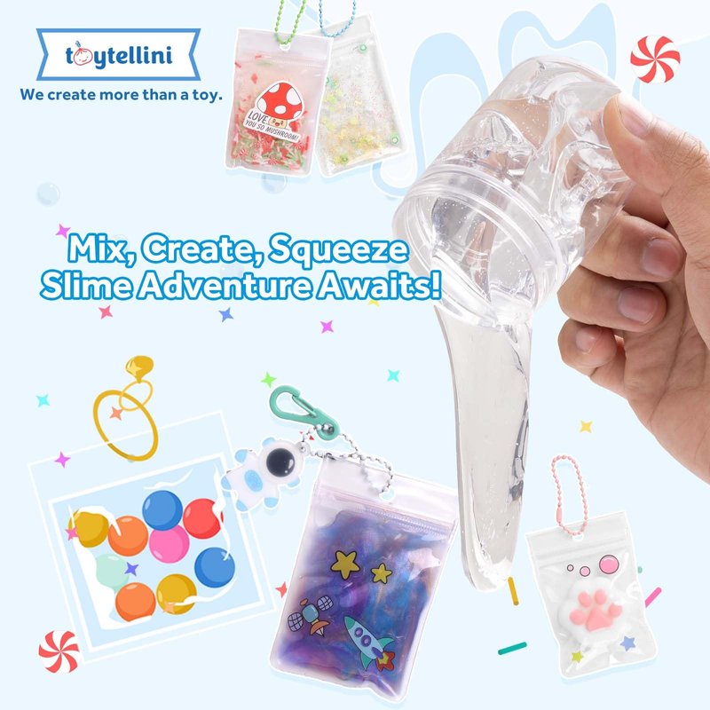 Discover Toytellini's charming slime kit, perfect for satisfying the creative cravings of slime lovers. Mix your own slime with a variety of eye-catching add-ins such as glitter, confetti, slices, sparkles, and sequins to create a luminous, sparkling masterpiece. Carry your glowing slime anywhere with our portable slime bags, and transform it into a keychain for on-the-go play and stress relief. Toytellini's kit offers a delightful blend of creativity and convenience, making it an ideal choice for personal enjoyment or as a thoughtful gift.