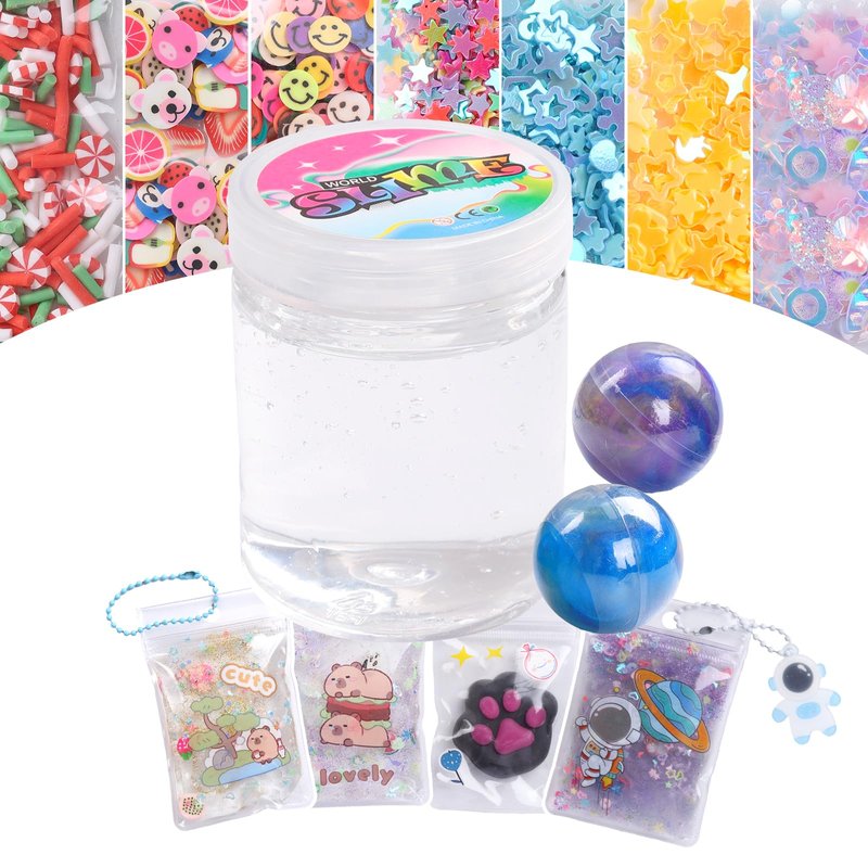 - ✨ ENHANCE CREATIVITY WITH SLIME ADD-INS - Glitters, cartoon confitti, Sparkle slices and beautiful sequins, we include a variety of slime add-ins to change the texture and add exciting effects to their creations.