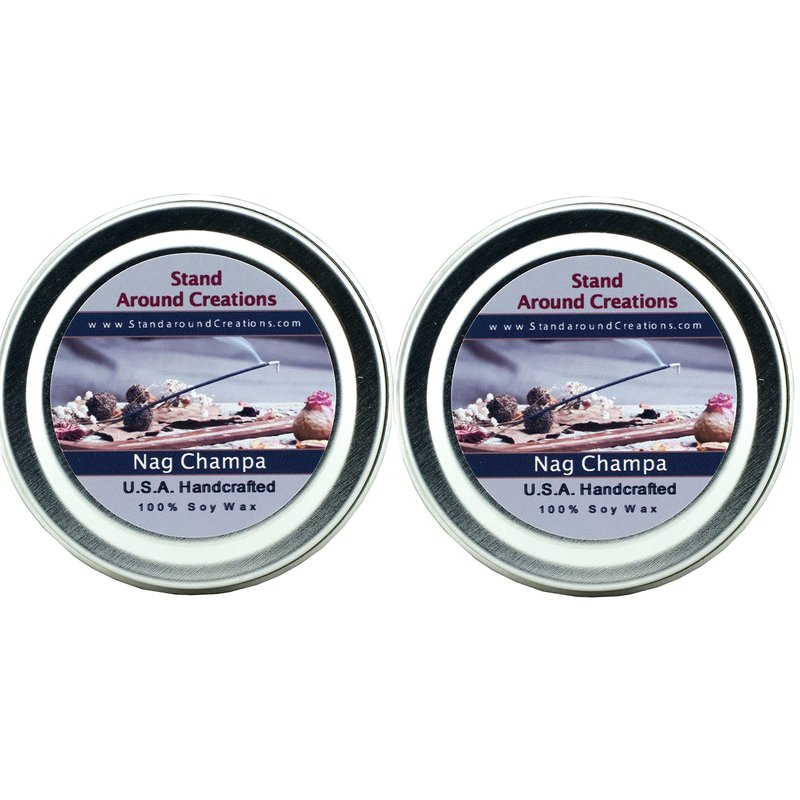 Premium 100% Soy Candles-Set of 2-2oz Tins - Nag Champa:The Aroma of Incense; Patchouli, Sandalwood, and Dragon's Blood Working Together to Create This Wonderful Blend.