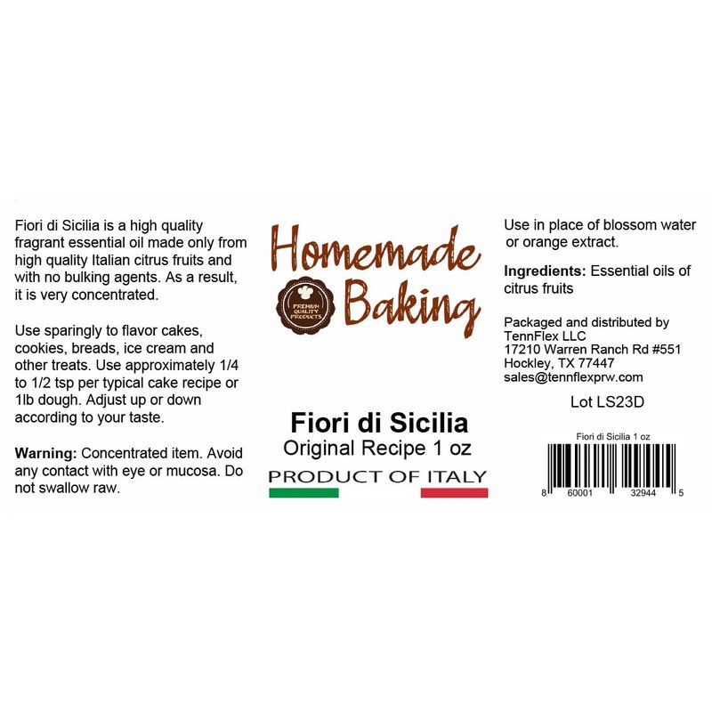 - It takes over 28 lbs of citrus peels to make 1 oz of this baking oil. It has a unique taste that elevates the flavor of baked goods and desserts. The exact combination of citrus fruits has been kept a secret. This is completely unadulterated and by far the absolute best Fiori di Sicilia you will ever find. It is manufactured by the original creator and perfected over 50 years to produce the most delightful aroma you get when you open the bottle. It tastes just as good as it smells.