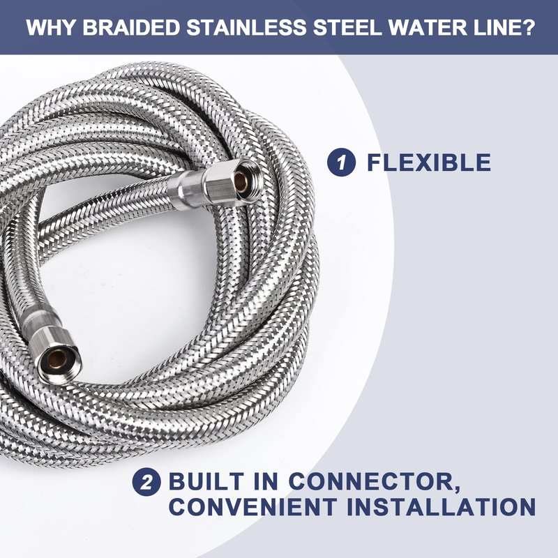 - EASY& CONVENIENT INSTALLATION - compare with plastic or copper ice maker line, flexible braided steel water line with built in connectors is more convenient and easy to install.