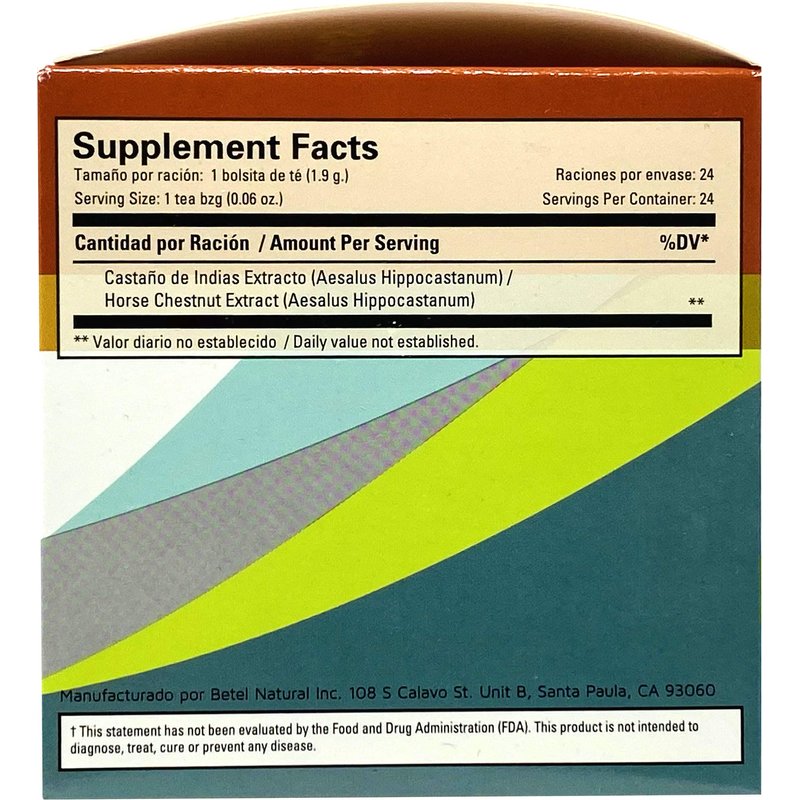 Premium Castanos de Indias (Horse Chestnut) Tea by Betel Natural - Promotes Healthy Circulation - 24 Tea Bags