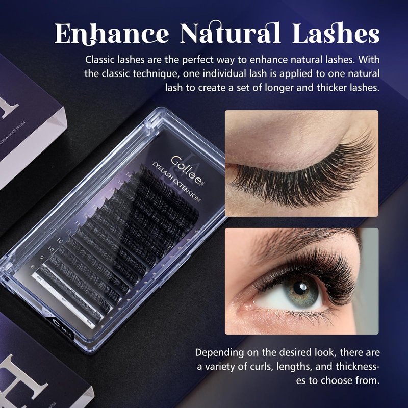 - High-quality materials: Our classic volume lash extensions are made of high-quality synthetic mink hair, with a soft and flexible texture that mimics the natural appearance and feel of real lashes. Each lash is carefully crafted to ensure a comfortable and long-lasting wear.
