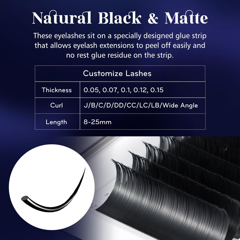 - Easy to apply: Our lash extensions are designed for easy application and removal. The individual lashes are pre-separated and easy to pick up, making it a breeze to apply to your clients. The thin and flexible band allows for a comfortable and secure application.