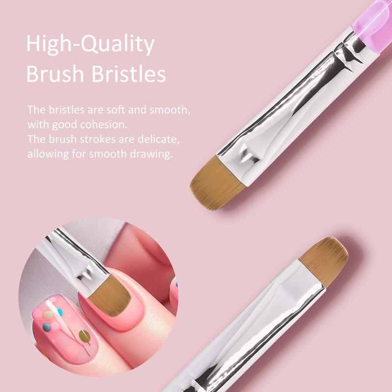 - This premium 2 Way French Gel Acrylic Nail Art Brush is a versatile double-ended tool, featuring a flat tongue brush on one end and a dotting tool on the other, designed for professional manicures and pedicures. The flat tongue brush is perfect for achieving an even and precise spread of gel, while the dotting tool is ideal for creating intricate designs and embellishments.