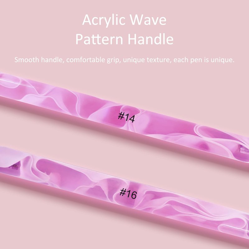 - The brush showcases an elegant pink marble acrylic handle with a silver ferrule, combining functionality with style. The dotting tool on the opposite end complements the sophisticated design, making it a stylish addition to any nail art toolkit. Available in sizes #14 and #16, it caters to various nail art design needs.