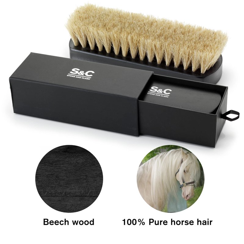 - The Secret to Perfect Polish - Made from 100% natural horsehair bristles and a smooth concave beechwood handle, this horse hair brush is designed to help you achieve a professional-quality polish every time with a perfect gip. Buff, shine and restore the luster of your leather with the horsehair shoe brush.