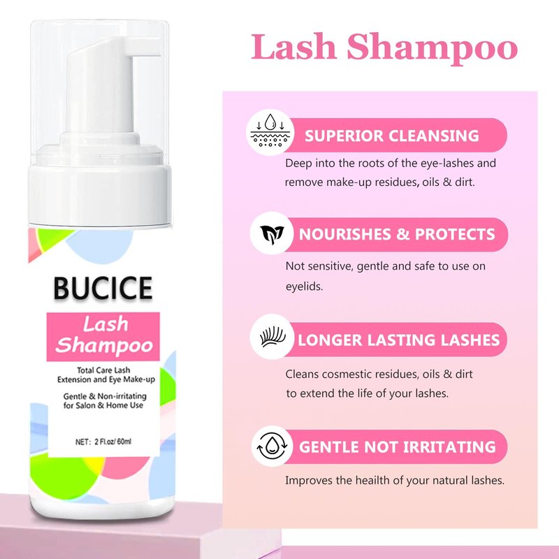 - 【Gentle and effective】Our eyelash extension cleanser is specially formulated to effectively remove dirt, oil, and makeup residue from your lash extensions without causing any damage. The included facial cleansing brush and eyelash brush ensure a thorough and gentle cleaning experience. BUCICE eyelash extension shampoo cleaning kits must be your indispensable choice,Restoring you a clean and refresh eyelashes.