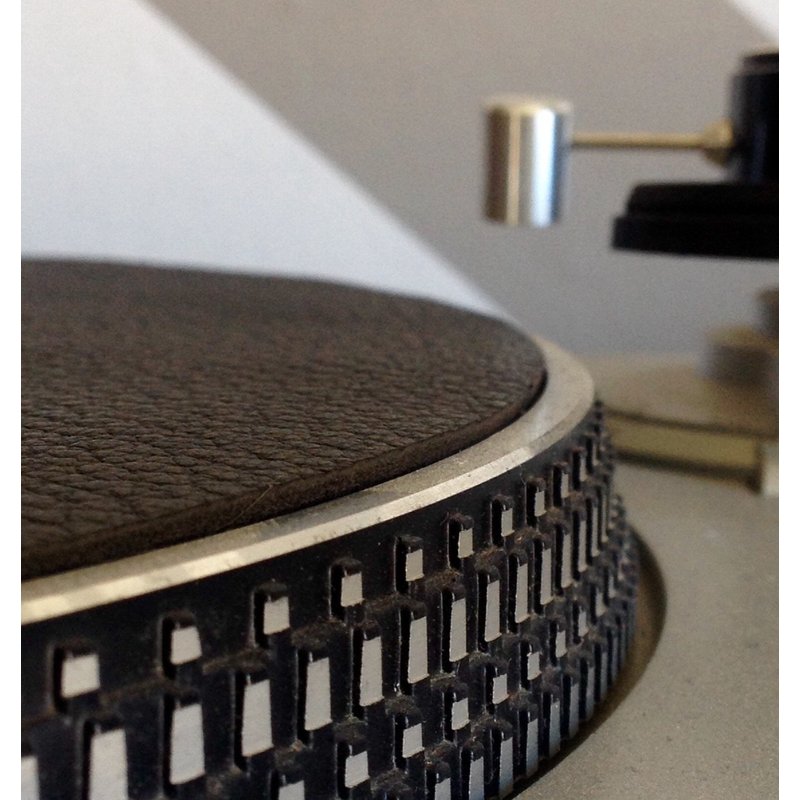 After getting fed up with dust and static spoiling my audio experience, I decided to do something about it. The factory rubber and felt mats seemed to contribute to the problem, so I began a search for a new material. After much experimentation, I found my answer. Deer hide. It is fantastic! So supple and buttery soft. Not only is my static gone, but the bass response is enhanced and there is additional sound dampening from the motor, as well. The overwhelming majority of reviewers (myself included) even swear it makes their records sound better. I hand cut each piece which enables me to work around natural flaws, bumps, nicks, and fluctuations in thickness to create a uniform, defect free mat. I punch the center hole slightly smaller to create a tight fit warding off any mat slippage. With my setup, I like to use the leather grain side up. Through this process, I believe I've found what works best, and most importantly, what SOUNDS best. All leather is not created equally. Hides vary in quality, thickness, feel etc. I've made it my mission to find the best hides for our audio purposes. I emphasize that I use deer hide because it is twice as expensive per square foot than the leather used for some other cheaper turntable mats I've seen. I would much rather explain the price of my mats than apologize for the quality. Like the Model T Ford, you can have any color you want so long as it's black. ( I am actually doing a very limited run of chocolate brown. I found a gorgeous hide that looks especially great on wood paneled turntables). The mats are right about 1/8 of an inch thick and 11.5 inches in diameter. When you order a turntable mat from me, what you're getting is a beautiful, handcrafted piece of material which will not only help eliminate dust and static issues, but also improve fidelity. Thanks for looking! Jake