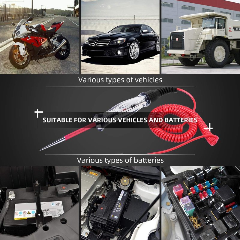 Premium LED Bulb Automotive Circuit Tester, 6-24V Test Light with 135 Inch PU Extended Spring Wire, Sharp Hard Steel Probe Vehicle Circuits Low DC Voltage Light Tester