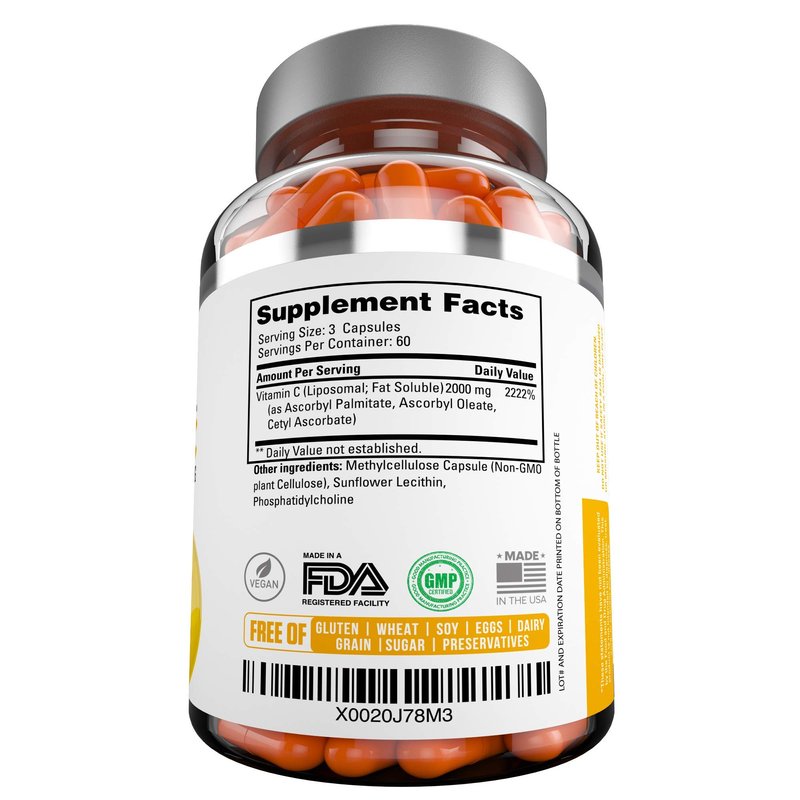 Premium Liposomal Vitamin C 2000mg - 180 Capsules –Ultra Potent High Absorption Ascorbic Acid, Supports Immune System & Collagen Booster - Powerful Antioxidant High Dose - Fat Soluble