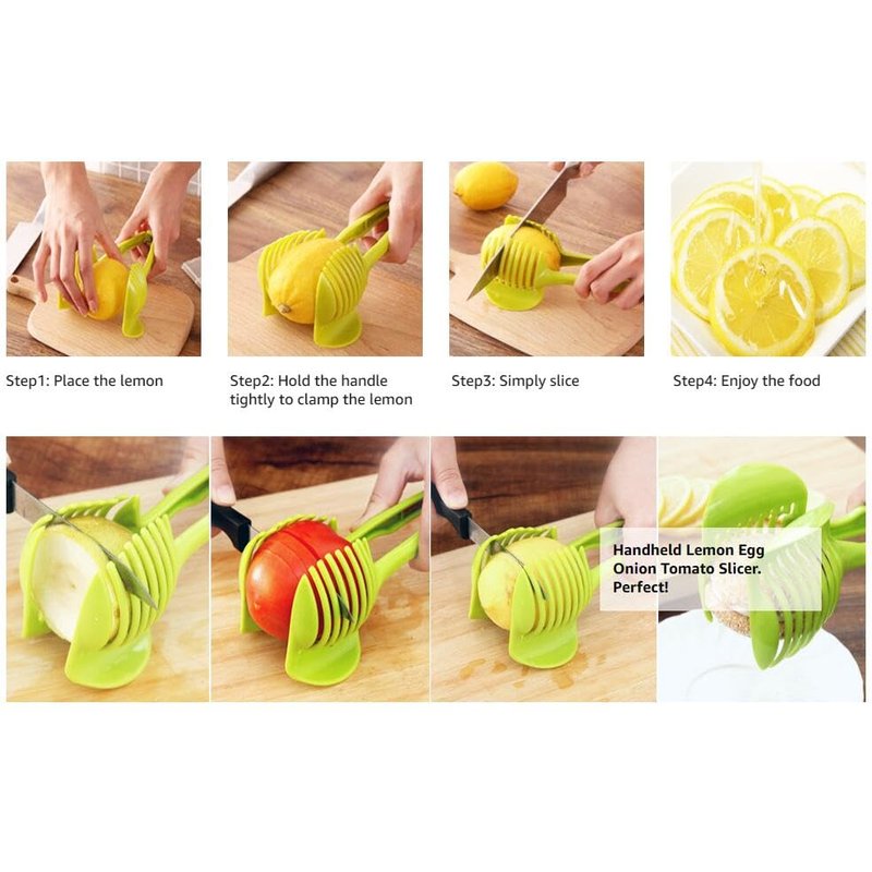 - ✅ MULTIFUNCTIONAL DESIGN: Slice onions, tomatoes, potatoes, lemons, apples, and more! Perfect for medium-sized vegetables and fruits, making it a versatile tool for all your kitchen needs.