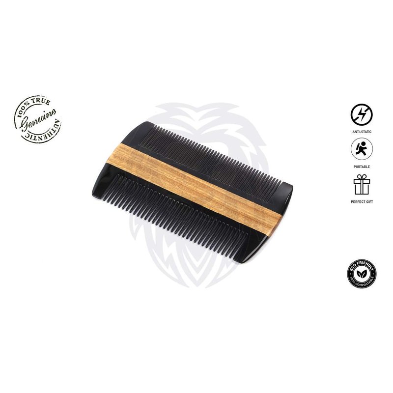 - Genuine Ox Horn & Green Sandalwood Dual Action. Conveniently sized to carry around or leave on your dresser Beard Comb & Black Protective Sleeve
