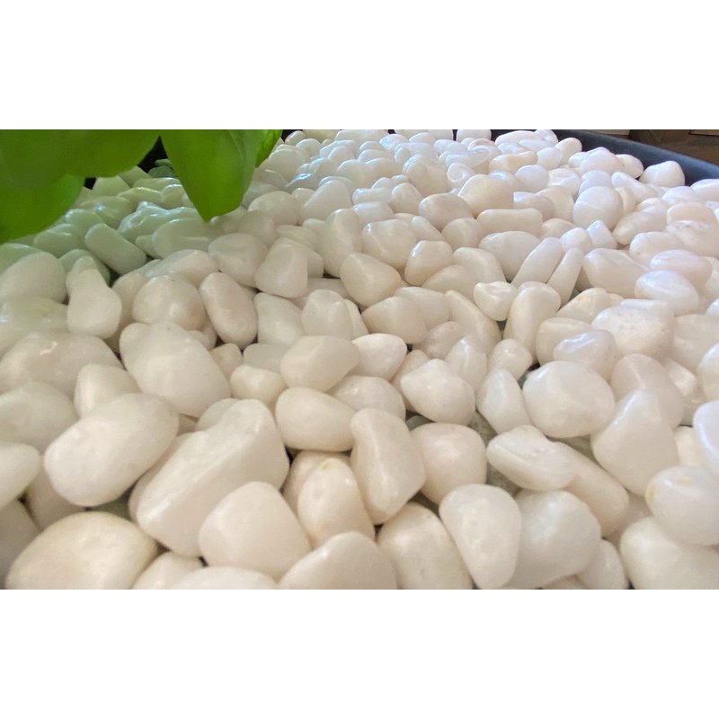 White Rocks. Rocks for plants. White Natural Polished Pebbles. White tones color and Lightly Polished. Beautiful for your outdoor Gardens. Use for Decorative applications such as Zen garden, Cactus garden, Rock garden, with succulents, plants, and trees. In Planters, Walkways. Indoors: Your wonderful accent piece in vases, pots, jars, bowls for flower arrangements, succulents, plants. Use for Landscaping Applications: Alternative to mulch (doesn’t deteriorate like mulch)