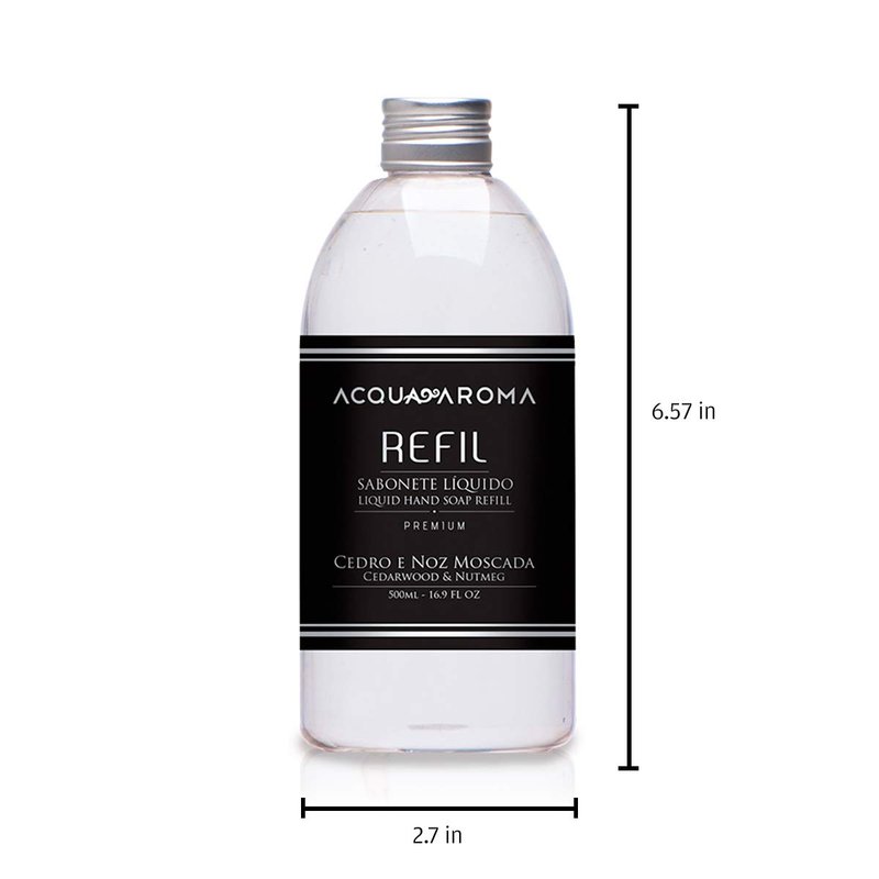 Premium Silver Liquid Hand Soap Refill Cedarwood & Nutmeg 16.9 FL OZ (500mL) by Acqua Aroma Handcrafted Made in Brazil