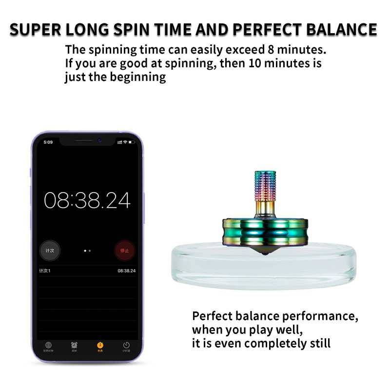 - ★ Long Spin Time & Perfect Balance: After training, on a smooth concave crystal glass base, most adults can spin for 5-8 minutes, and professional players can spin for more than 10 minutes. The spinning top has perfect balance performance, the spinning top can spin in a small space without falling, and when you spin well, it floats and stays there like it is still.