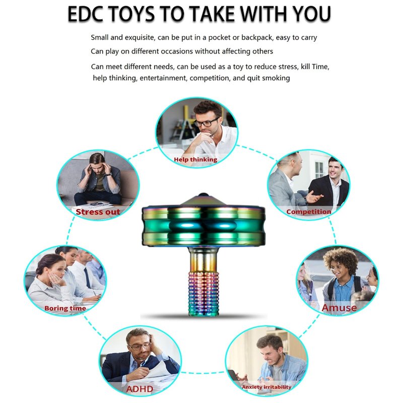 - ★ Efficiently Kill Time: The desktop spinning top is a very good toy for killing time, you can spin it and watch its charming rotation, which can help you kill your leisure time, relax, reduce pressure, improve work efficiency, and focus. It can also be used as a competitive toy to record your best spinning time, or compete with friends and colleagues to see who has a longer spinning time.