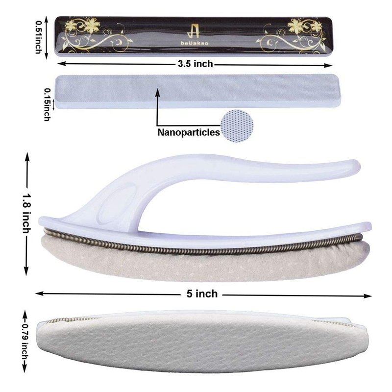 - NANO GLASS NAIL FILE--Easy use. Gently use the glass file nanoparticles side (not smooth side) on the top or the edge of nails, go side to side and vice-versa. Deeper scratches can be avoided with careful and gentle filing. Do this over the whole nail for about 30 seconds than check it. You'll notice the nail bed is super shiny and the nail edge is shaped already. This thing does in 30 seconds what it takes minutes and alot of elbow grease to do with buffing blocks.