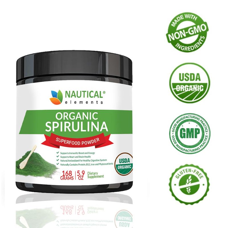 Premium USDA Organic Spirulina Powder - Organic Spirulina of Blue Green Algae from California & Hawaii – 100% Vegetarian & Vegan, Non-GMO, Non-Irradiated – The Best Green Superfood for Smoothies!