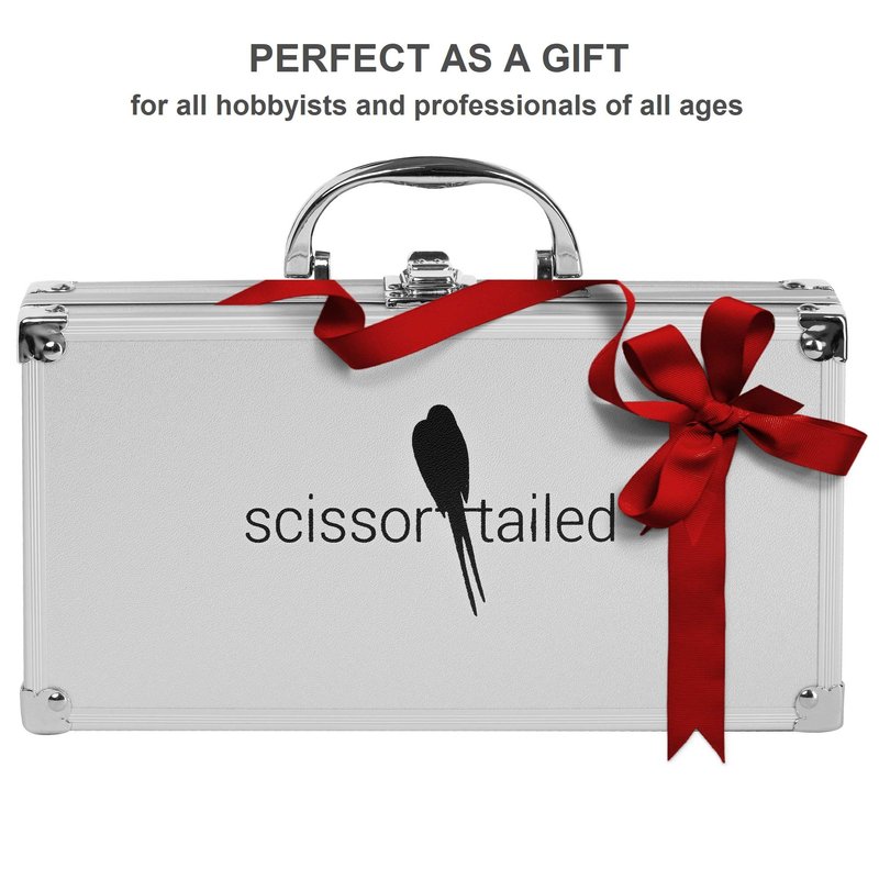 - ✔️WIDE RANGE OF TIP PATTERNS ➤ The Scissor-Tailed Pyrography Pen Kit comes with 36 different Interchangeable Tips (e.g., shading tip, razor blade tip, calligraphy tip, flow tip, tapered tip, pattern transfer tip, stripes tip, branding tips, knife tip, soldering tips etc.) which allow you to make a wide range of pyrography patterns, have variations in the thickness of strokes and even make easy cuts using the razor blade tip. The kit also has soldering tips and wire for quick soldering jobs.