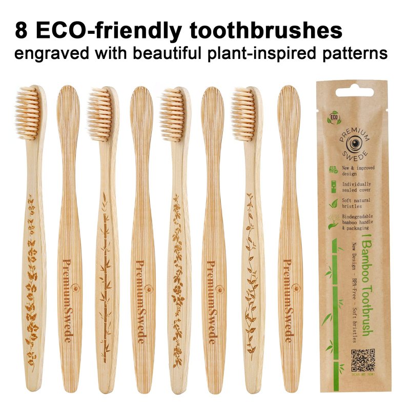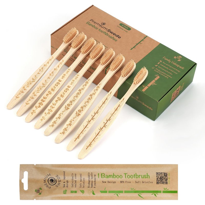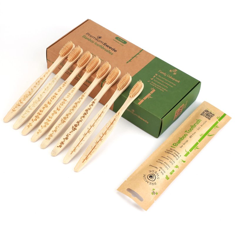 Premiumswede Bamboo Toothbrushes Soft Bristles Adult - 8 Pack Eco-Friendly Bamboo Toothbrushes Individually Wrapped - Sealed Soft Bristle Toothbrush - Biodegradable Natural Wooden Toothbrushes
