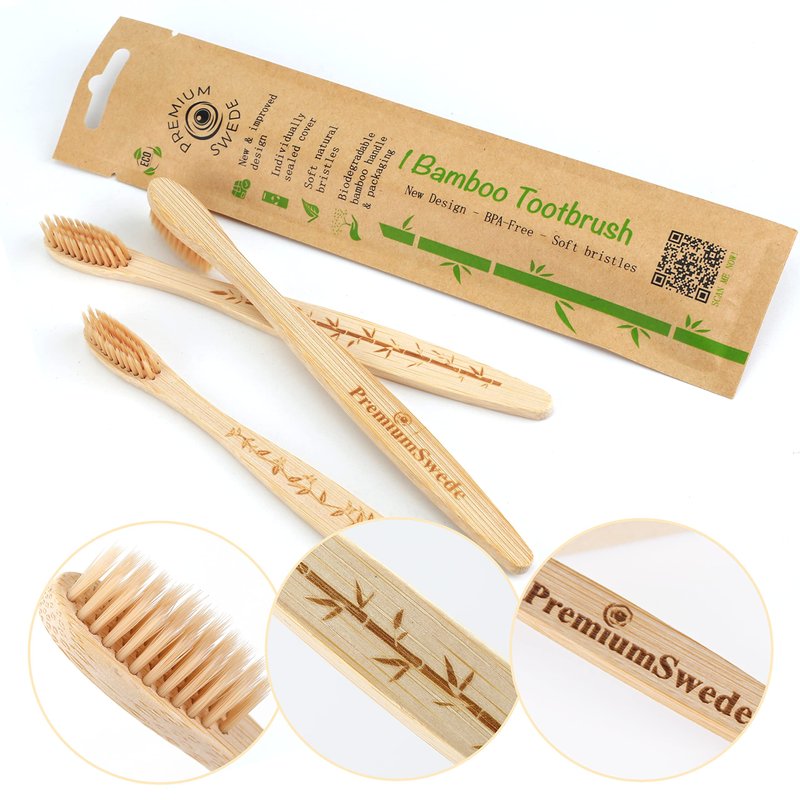 - WITH LOVE FROM SWEDEN: In our strive for Zero Waste we are constantly working towards your satisfaction. This biodegradable toothbrush set includes 8 individually wrapped toothbrushes with punch holes for easy hanging in a shop or hotel. The bamboo wood handles and packaging are 100% biodegradable and compostable. The soft bristles are thin BPA-free nylon-6, recommended by dentists to minimize damage to teeth and gum. Happy brushing!