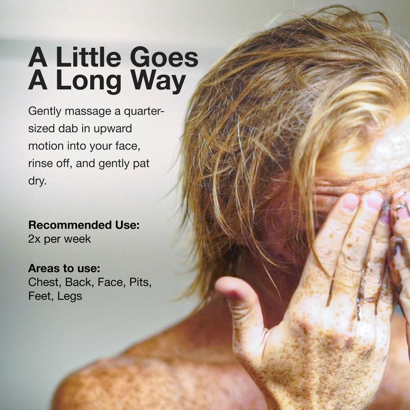 - CLEAR SKIN: Washes away dull, dry skin face and body scrub: combination of activated charcoal, bentonite clay, apricot kernel and walnut hull powder makes a powerful exfoliating face cleanser and daily body wash.without the overly gritty texture of other exfoliators
