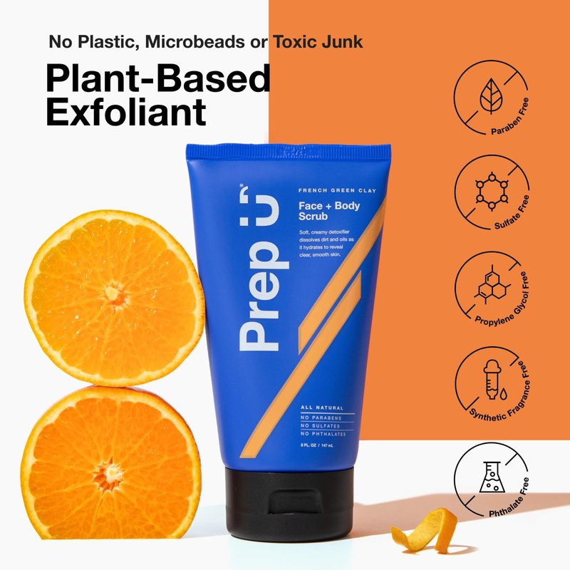 Exfoliating never felt so smooth. Made with the light, purifying properties of French Green Clay, Prep U Face & Body Scrub washes away dull, dry skin without the overly gritty texture of other exfoliators. Absorbing oils and toxins from face to feet, this powerful, plant-based skin polisher dissolves dirt without over-drying and hydrates skin using all-natural essential oils. Gentle enough for your face, but tough enough for your body, this scrub will leave your skin feeling oh la la.