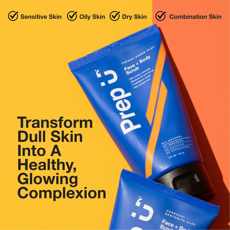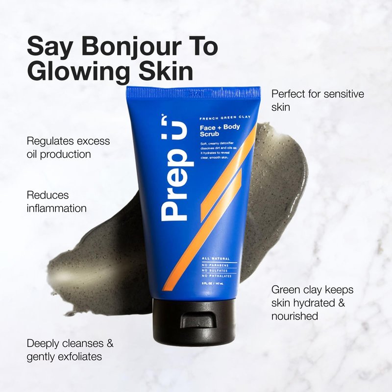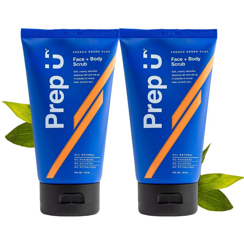 Prep U French Green Clay Exfoliating Body Scrub & Exfoliating Face Wash for Teens, MenAthletes – Vegan, Plant based, Exfoliator, Natural Facial Exfoliant for Blemishes and Bacne – 5 Fl Oz (2 Pack)