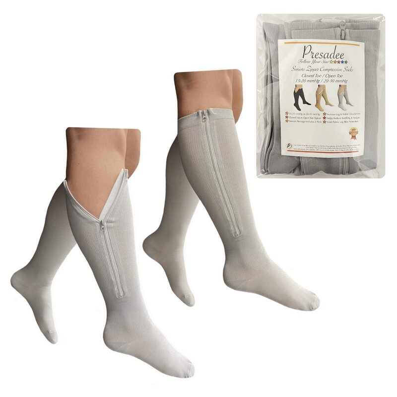 Presadee Seniors 15-20 and 20-30 mmHg Zipper Compression Open Closed Toe Socks (15-20 & 20-30 mmHg Closed Toe Grey, S/M)