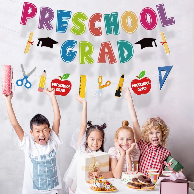 - What You Get: Pre-assembled Preschool Grad banner for kids Classroom Party Decorations