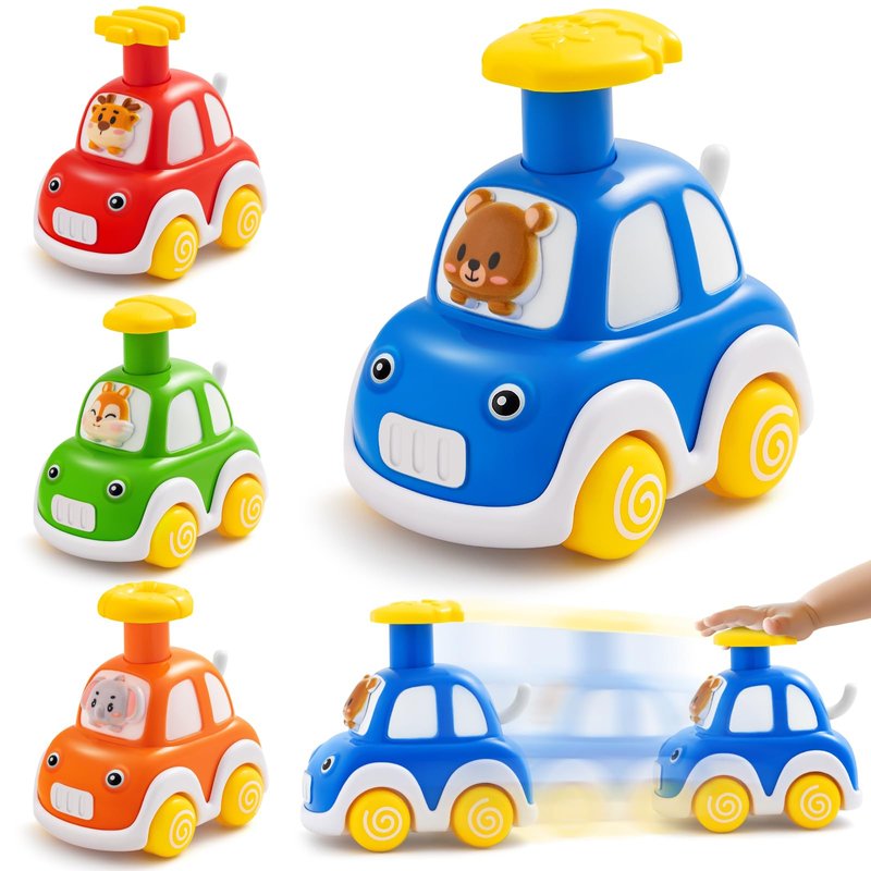 - Grow in Happy Play - In terms of knowledge learning, the interesting and vivid designs can stimulate children's interest, which not only develops their cognition of animals and other things but also actively explores the relationship between them. In terms of rough motor training, the press-and-go car structure can exercise the power of children's hands, and can also encourage infants to crawl and chase, improving their physical fitness. Perfect gifts for 1 year old boys.